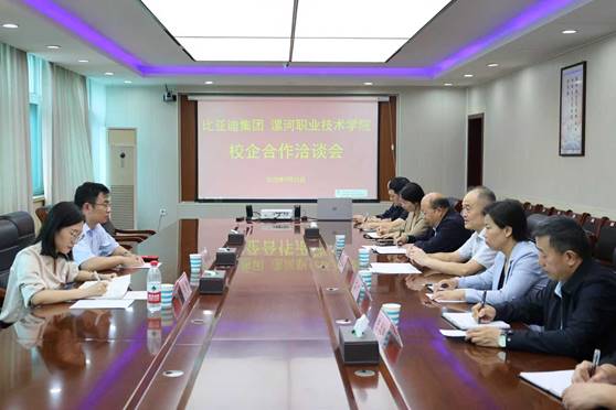 9月25日,比亚迪集团华中区人事总监陈静一行到球王会体育洽谈校企合作工作。公司经理薛存心出席洽谈会,比亚迪集团郑州工业园人事经理任永斌以及公司相关部门负责同志参加洽谈会。会议由公司副经理石晓主持。